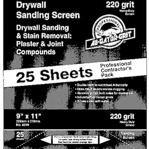 Product Description : *** (This item sold as a pack of 25) ***Open mesh waterproof silicon carbide for sanding and finishing of drywall joint compound. Non clogging abrasive screen has grit on both sides for longer life. Can be used on wood, metal, plastic, and auto body filler. 9'' x 11'' sheets. 25 sheets per box.