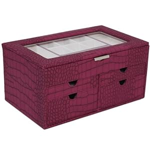 Large Jewelry Box and Keepsake Chest Organizer Container in Animal Print Inspired Motif in Magenta / Purple / Wine Sa...