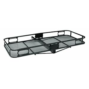 Hitch mounted cargo carrier with 60" x 24" platform Rated capacity of 500 pounds Fits 2-inch receivers 6-inch side rails help s