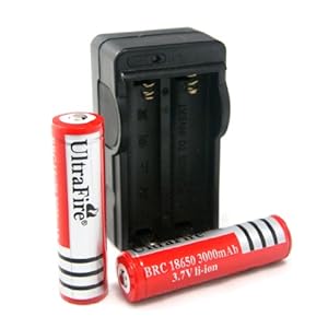UltraFire 18650 3000mAh 3.7V Rechargeable Li-Ion Battery (Pair) + Charger Combo