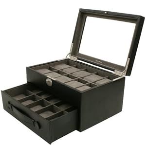 Watch Box Storage Case Leather For 20 Watches With Lucite Window by Tech Swiss