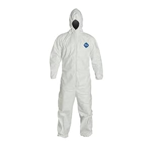 DuPont Tyvek Disposable Coverall with Hood, Elastic Cuff, White, X-Large ( Pack of 6)