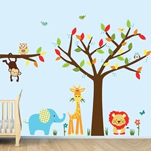 Jungle Animal Decals, Monkey Decal, Giraffe Decal, Elephant Decal, Tree Decal (Color Me Happy)